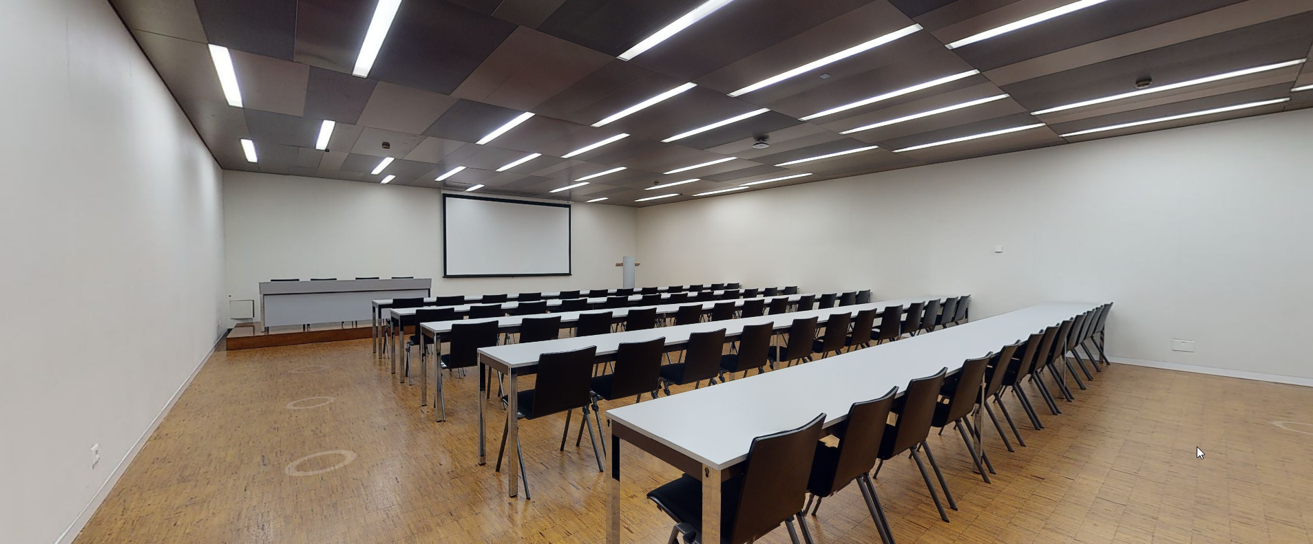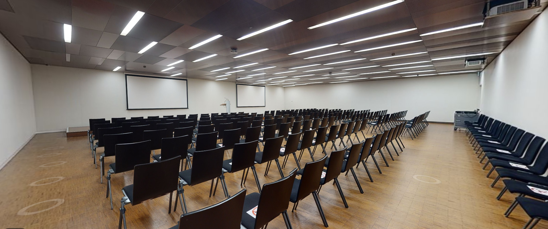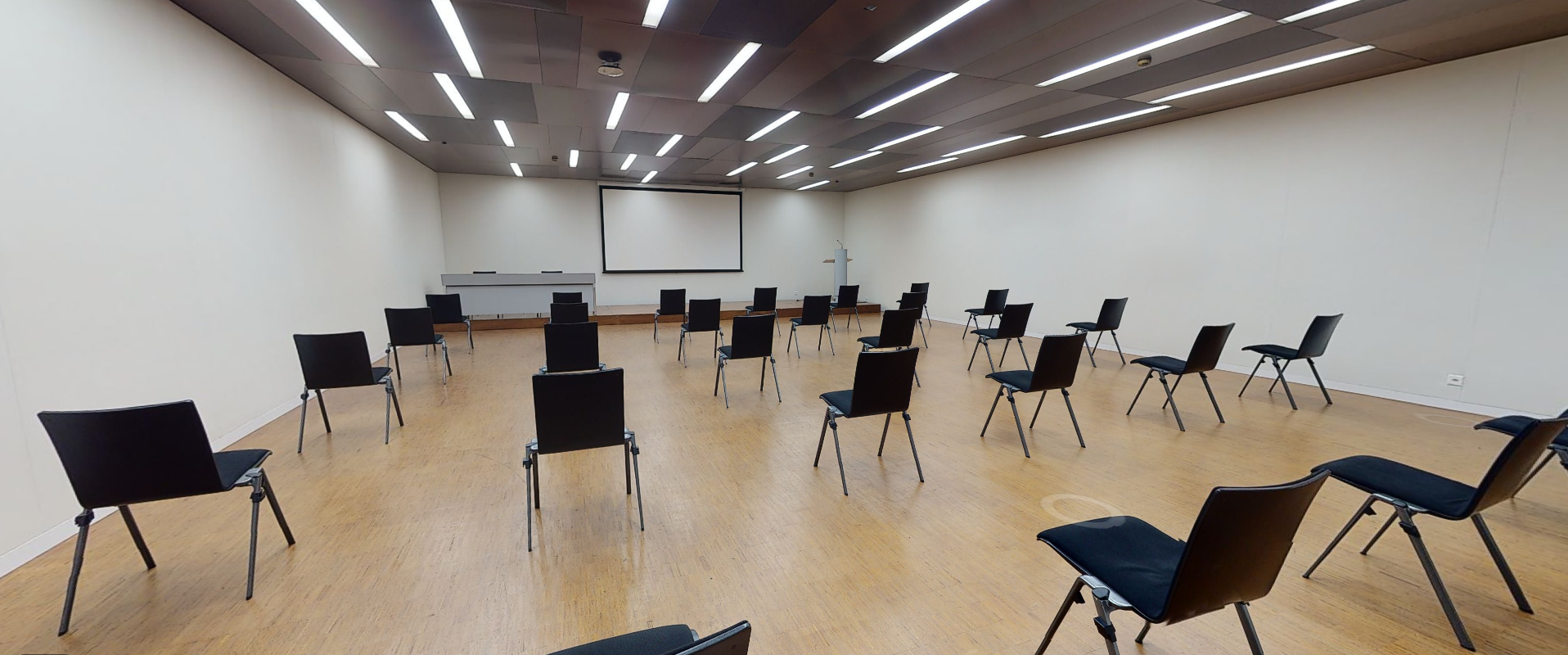 Les salles E, F, G peuvent accueillir jusqu’à 120 personnes chacune en format théâtre. La salle K peut, quant à elle, recevoir jusqu’à 230 personnes, alors que la salle L peut accueillir 108 personnes.